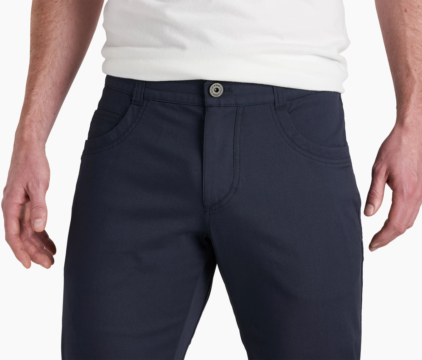 - Jean-style front hand pockets with front coin pocket